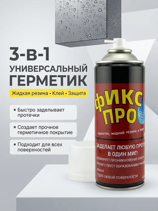 Тестирую спрей-герметик Fix Pro: обещает 100% водонепроницаемость на металле, пластике и бетоне. Работает ли на практике для ремонта дома, авто и дачи?