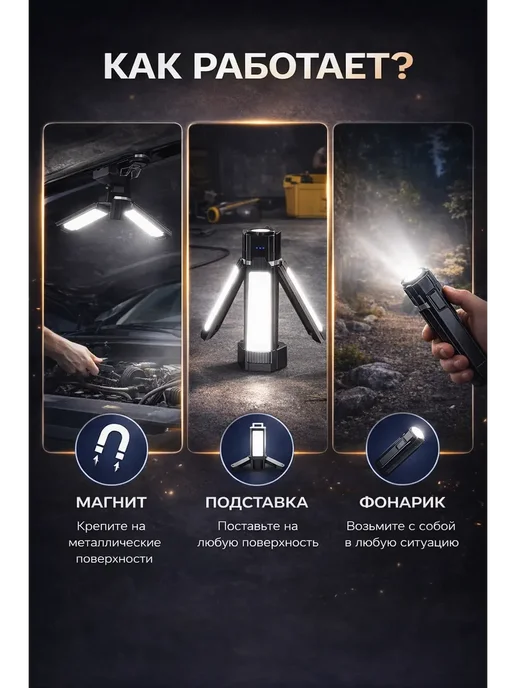 Живу в частном доме — отключают свет 2-3 раза в месяц на час-полтора. Раньше сидели со свечками и телефонными фонариками, неудобно. Хотелось нормальный аккумуляторный светильник с запасом хода и возможностью зарядить телефон если батарея сядет. На Wildberries увидела LED фонарь-трансформер 3 в 1 с функцией powerbank — привлекли магнитное крепление и заявленные 8-12 часов работы.