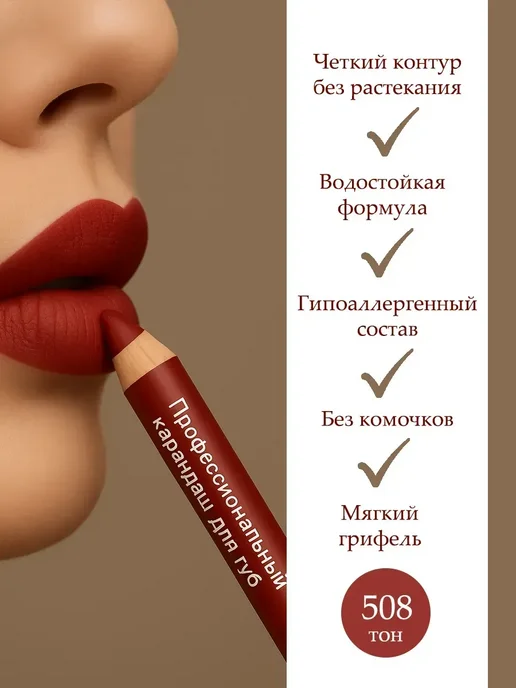 Разбираю профессиональный карандаш для губ от SABI: стойкость до 10 часов, водостойкая формула, без комков. Тестирую цвет 508 на практике – работает ли на жирной коже и не стирается ли за день?
