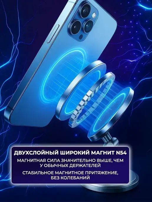 Пользуюсь уже четвёртый месяц и могу сказать точно — это один из лучших автодержателей, которые у меня были. Магнит N54 действительно очень мощный. Телефон (iPhone 13 Pro в толстом чехле) держится намертво даже на наших ямах и трамвайных путях.