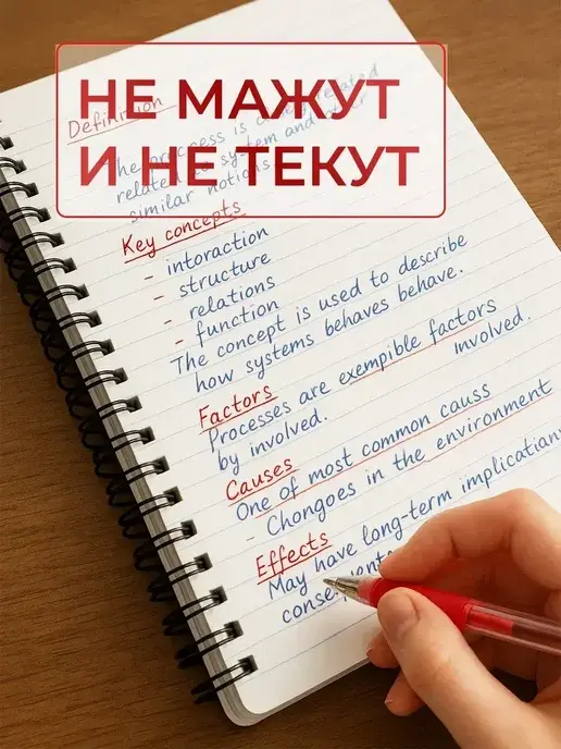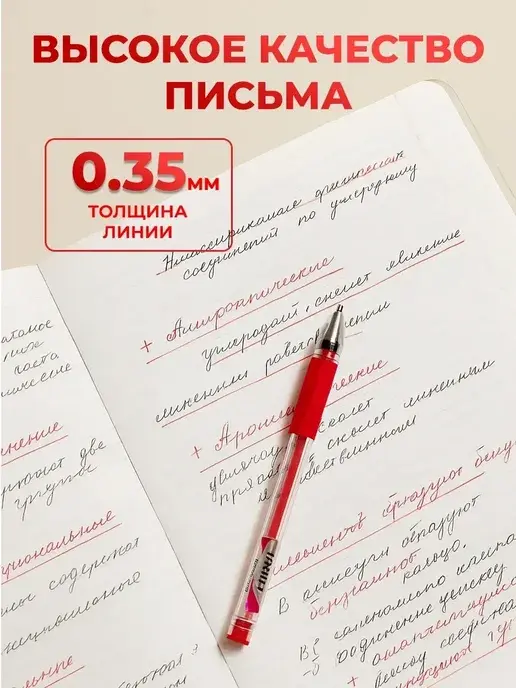 После расписывания ручки начали писать нормально. Линия действительно тонкая, четкая, насыщенно-красного цвета. Для исправлений и пометок в документах — самое то. Текст получается аккуратным, разборчивым.