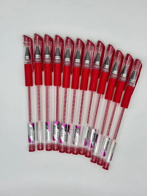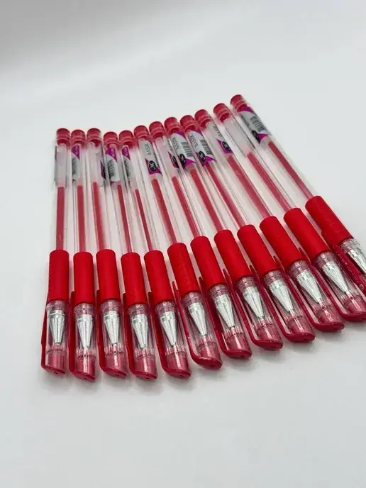 Заказала набор из 12 красных гелевых ручек MC Basis с тонкой линией 0.35 мм для работы — нужно было делать пометки и исправления в документах. Цена за набор привлекательная, решила взять сразу оптом, чтобы не докупать потом поштучно.