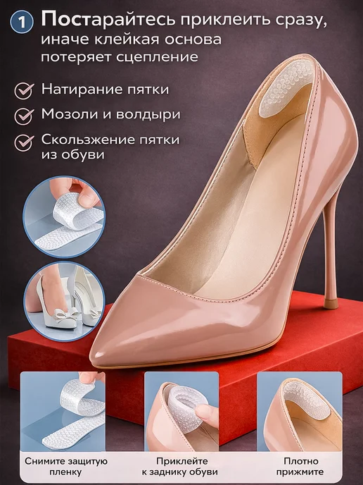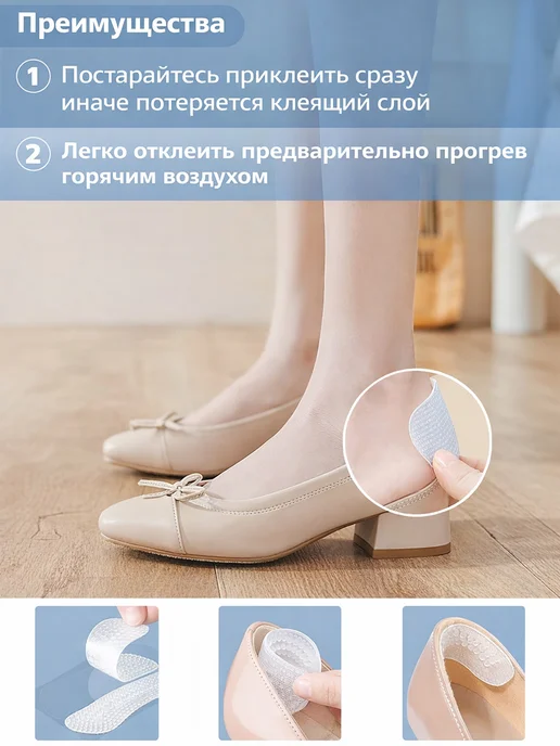 Лучше всего работают в закрытых туфлях-лодочках с жестким задником — там они вообще незаметны и отлично держатся. В босоножках с открытой пяткой тоже можно использовать, но там они могут быть видны, если задник низкий. В балетках не пробовала — думаю, там они будут лишними, слишком толстые.