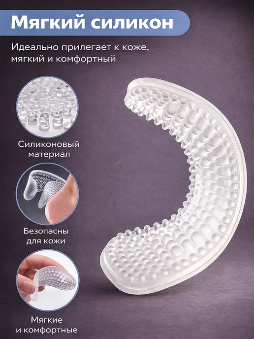 У меня была проблема: в туфлях на каблуке нога постоянно съезжает вперед, и пальцы упираются в носок. С этими подушечками действительно стала меньше сползать вниз, потому что силикон чуть-чуть фиксирует пятку. Не то чтобы совсем решило проблему, но заметное улучшение есть — походка стала увереннее.