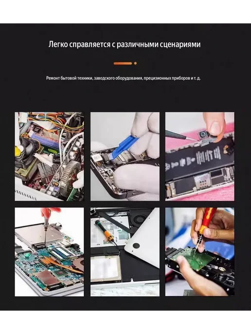 Для домашнего ремонта техники — телефоны, ноутбуки, планшеты. Для любителей самостоятельного ремонта — всё необходимое в одном месте. Для тех, кто чинит гаджеты знакомым — универсальный набор на все случаи. Для путешествий — компактный, удобно брать с собой.