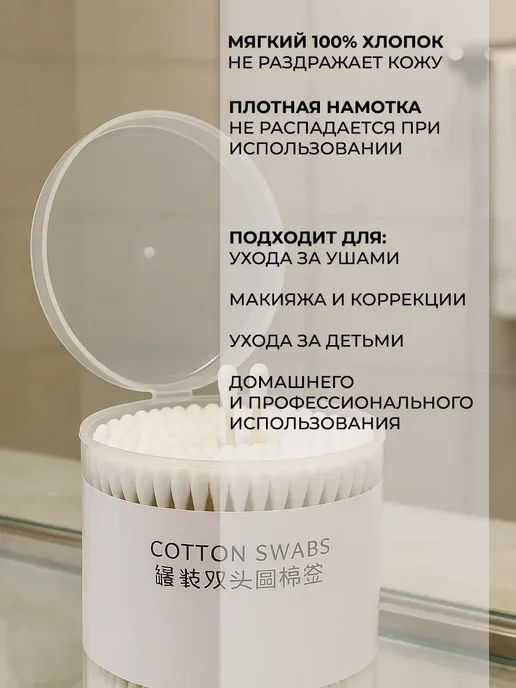 Наша банка ватных палочек — идеальное решение для ежедневной гигиены и макияжа. В упаковке 500 шт ватных палочек — это удобно и экономично. 100% хлопок на концах гарантирует нежное трение и отсутствие ворса, а экологичный бумажный стержень делает изделие безопасным для природы. Удобный контейнер позволяет быстро брать нужную палочку и надежно закрывать крышкой, сохраняя чистоту. Подходят для: Чистки ушей и маленьких ранок; Корректировки макияжа — идеально для теней и подводки; Ухода за младенцами — мягкий натуральный материал; Домашней и косметической гигиены. Основные преимущества: Защита от пыли и влаги — герметичная крышка; Подходит для использования в медицине, косметологии и быту; Устойчивы к разделению — хлопок плотно намотан на стержень. «ватные палочки купить оптом», «ватные палочки ECO», «гигиенические ватные палочки»