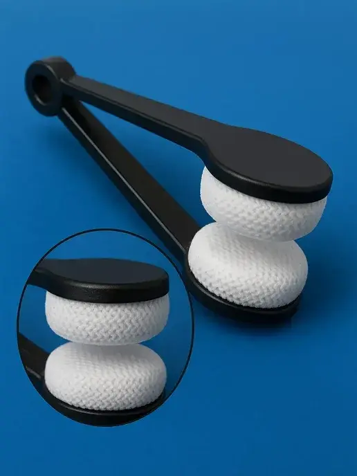 Щётка очень компактная, помещается даже в маленький карман или косметичку. Одна сторона — мягкая щетина, вторая — микрофибра. Отлично убирает пыль, отпечатки пальцев и мелкие загрязнения. Линзы после чистки действительно чистые, без разводов.