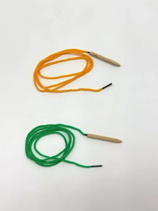 Игрушка рекомендована от 3 лет, и это обоснованно. Детали достаточно крупные, но шнурок всё равно может представлять опасность для малышей младше трёх лет — они могут запутаться или попробовать жевать. Обязательно играйте под присмотром. Сама игрушка прочная — дерево не крошится, краска не облазит, шнурок крепко закреплён.