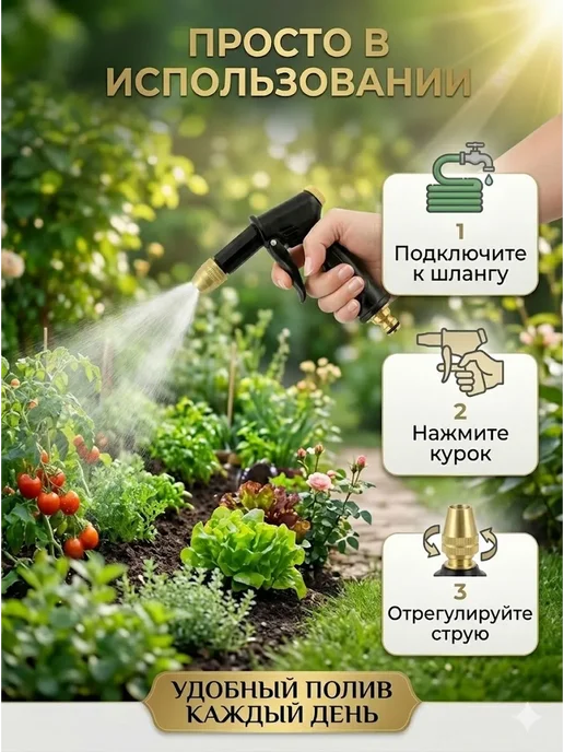 Для дачников и огородников — универсальный инструмент для полива. Для мойки машины и дорожек — мощная струя справляется. Для полива рассады и цветов — мягкие режимы не повреждают растения. Для тех, кто ищет бюджетный вариант — 420 рублей за функционал. Для редкого использования — на сезон точно хватит.