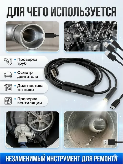 Для домашнего ремонта — осмотр труб, вентиляции, канализации. Для автолюбителей — проверка двигателя, подвески, скрытых мест. Для сантехников — диагностика засоров без разборки. Для электриков — осмотр проводки в стенах. Для тех, кто чинит технику — заглянуть внутрь не разбирая.