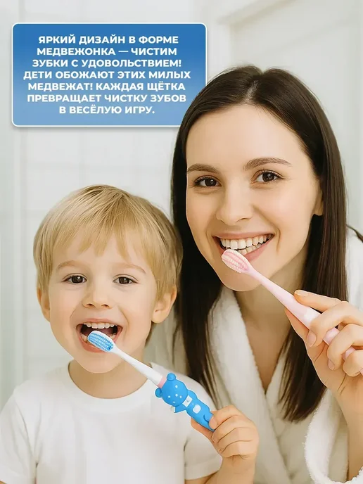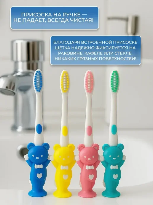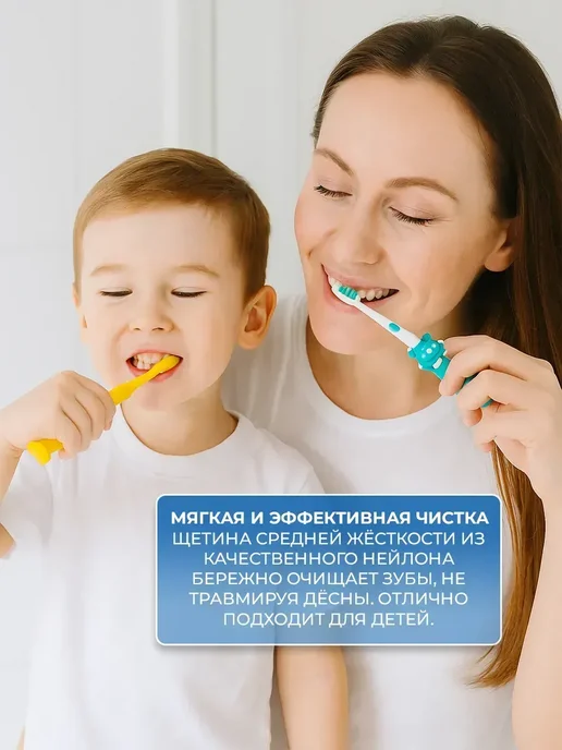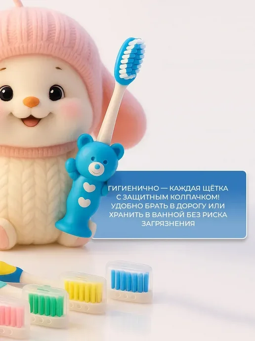 Набор детских зубных щеток — идеальное решение для заботливых родителей, стремящихся обеспечить правильный уход за зубами малыша с самого раннего возраста. В набор входят щетки разной жесткости — от мягкой до средней, что позволяет подобрать подходящий вариант как для малышей, так и для подрастающих детей от 4 лет. Подходит как мальчику, так и девочке, а также станет отличным подарком на годик, день рождения или просто без особого повода.Каждая детская зубная щетка разработана с учётом анатомических особенностей рта ребёнка: компактная форма, удобная ручка, интересное исполнение в виде мишки, медвежонка или с изображениями из мультикам делают процесс чистки приятным и увлекательным. Есть модели с футляром, колпачком, на присосках — удобно брать с собой в дорогу и хранить дома.Щетинки подходят даже для чувствительных дёсен и языка, благодаря силиконовой текстуре и мягкому движению. Специальные ортодонтические, пучковые и отбеливающие щетки помогают ухаживать за зубами с брекетами и эффективно удаляют налёт и зубной камень, обеспечивая полноценную гигиену полости рта. Отлично сочетаются с любой детской пастой или натуральными средствами.В наборе — разноцветные щеточки, поэтому каждый ребёнок найдёт свою любимую. Такой комплект подойдёт как одному малышу, так и для всей семьи с детьми от 6 до 12 месяцев и старше. Совместим с другой уходовой продукцией: шампунями, средствами для посуды, полезными штучками. Безопасные, без токсичных материалов — только надёжные товары из Китая и китайские бренды с любовью к детям.Откройте мир яркой и полезной гигиены вместе с нашим детским набором — подарите малышу красоту и здоровье с первого зуба!