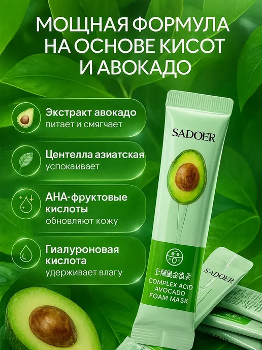 Эту пенную маску SADOER с авокадо я заказала спонтанно, в поисках чего-то бюджетного для очищения пор. Использую её уже около месяца, поэтому впечатление сложилось достаточно полное.