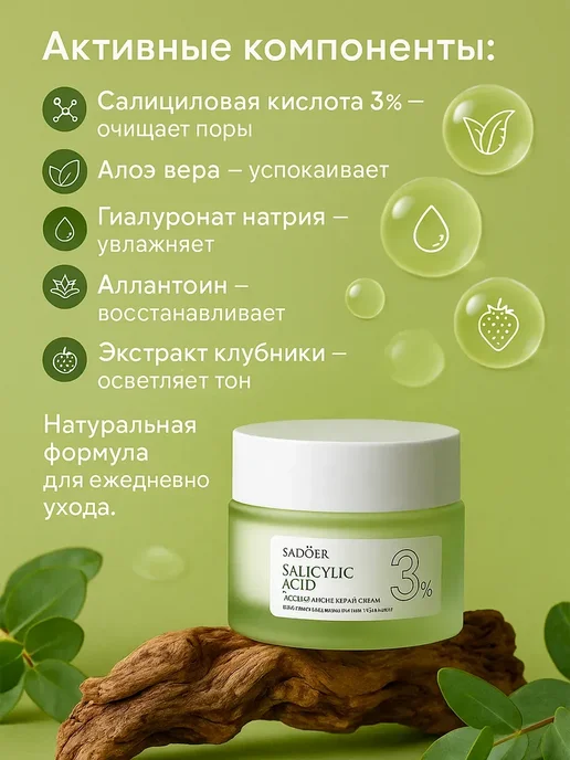 Этот крем для лица создан специально для эффективной борьбы с прыщей, акне, воспалениями и следами черных точек. Лёгкая формула разработана с учётом потребностей подростка и подростков, а также взрослых с проблемной кожи. Средство сочетает в себе действие активных компонентов: салициловая кислота помогает очищать поры и уменьшать высыпания, ретинол способствует обновлению кожи, а комплекс с ниацинамидом поддерживает барьер, выравнивает тон и помогает осветлять следы пигментных пятен.Несмотря на мощный состав, крем остаётся мягким и комфортным, подходит для жирной и сухой кожи, а также комбинированных типов. Он действует как увлажняющий и одновременно питательный вариант ежедневного ухода. Текстура легко распределяется, не оставляет липкости и помогает уменьшить воспаления, контролировать блеск на носу, разглаживать поверхность кожи и снижать риск появления новых комедонов. Такой продукт удобен и для использования дома, и как точечная мазь при необходимости.Этот корейский формат ухода — качественное оригинальный средство, созданное на основе современных технологий Корея. Оно подходит как для молодых девушек, так и для мальчику, парню, девочек, а также для женщин и мужчин, которым требуется мягкая коррекция проблемной кожи без пересушивания. Крем помогает поддерживать чистоту и здоровье кожи каждый день, делая уход более эффективным и комфортным.Такой продукт станет отличным вариантом, если вы ищете полезный подарок. Его можно подарить подруге, девушке, женщине, маме, мужчине, мужу или подростку. Крем легко впишется в любой набор и может использоваться как подарочный вариант к дню рождения, на любой день, к новогодние праздникам, на новый год или просто как приятный жест к НГ.Этот крем сочетает эффективность, безопасность и мягкое действие, помогая коже выглядеть чище, ровнее и здоровее.