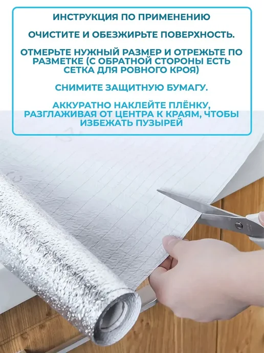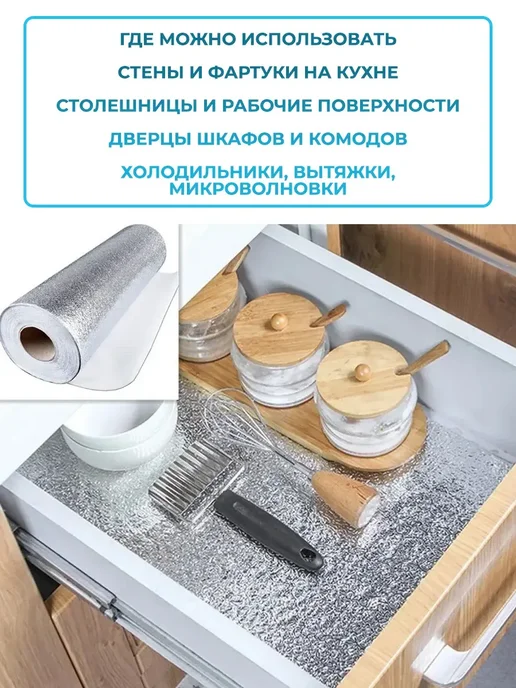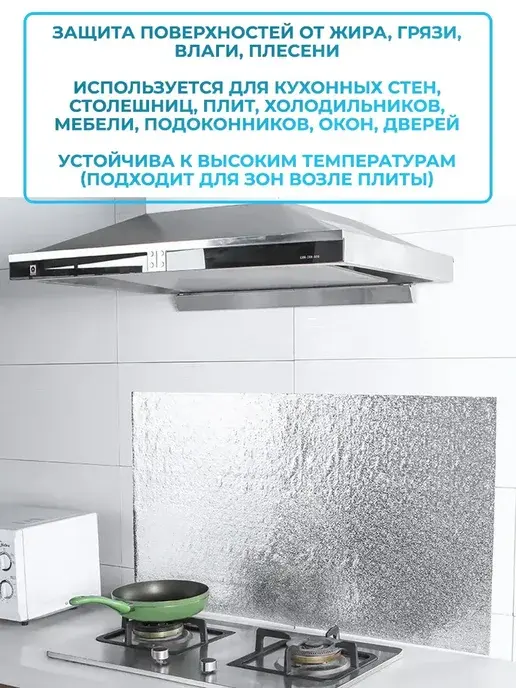 Фольгированная самоклеящаяся пленка для кухни и фартука — это практичное и стильное решение для быстрого обновления мебели, стен, столешницы и даже холодильника без дорогого ремонта. Самоклейка проста в использовании: достаточно снять защитный слой и аккуратно приклеить материал к нужной поверхности. Фольга плотная, влагостойкая, жаропрочная и термостойкая, поэтому идеально подходит для кухонных гарнитуров, фартуков, плитки, панелей, столов и тумб.Фольгированная пленка шириной 60 см выпускается в рулоне, легко режется и подстраивается под размеры шкафов, дверей, ящиков, подоконников и даже окна. Это универсальная самоклеющаяся декоративная пленка из прочного ПВХ и алюминиевой фольги, устойчивая к влаге, жару, грязи и солнечным лучам. Защитная клеящаяся основа обеспечивает надёжное сцепление с материалом — будь то дерево, пластик, стекло или металл.Такое водонепроницаемое покрытие подходит не только для кухни, но и для ванной комнаты, фасада мебели, дверцы шкафчиков, фасадной панели или даже раковины. Благодаря термоизоляционным свойствам плёнка выдерживает температуру около духовки, варочной плиты или духового шкафа, защищая от брызг жира и влаги.Фольга имеет глянцевую серебристую поверхность. Такая мебельная самоклеющаяся пленка отлично подходит для оклейки шкафов-купе, кухонных фасадов и подоконников. Её легко мыть — моющийся, антивандальный, прочный материал устойчив к царапинам и не теряет блеск со временем.Клеенка и термоплёнка удобны в работе — не требуются специальные материалы или инструменты. Просто обклеить выбранную поверхность, и ваша комната преобразится всего за несколько минут. Самоклеющая фольгированная плёнка — это настоящее чудо для дома, создающее чистоту, комфорт и защиту от грязи и солнца.Подходит для входной двери, кухонных фасадов и любых других мест, где нужна универсальная клейкая защита. самоклеющие плёнки, самоклеющая фольга — надёжное решение