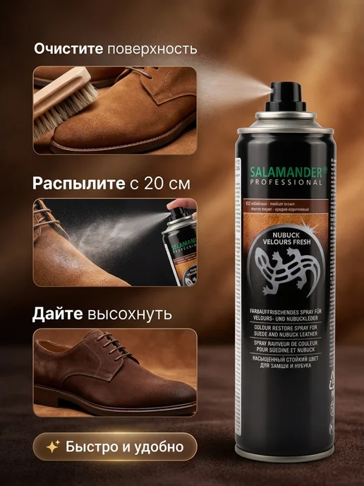 Тестирую спрей для нубука и замши от Salamander: обещает освежить потертые ботинки без склеивания ворса. Работает ли на практике или просто маркетинг? Разбор с фото до и после.