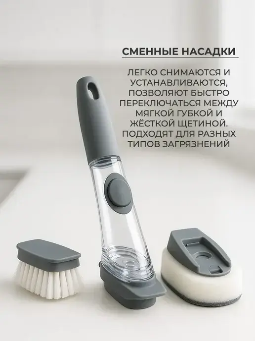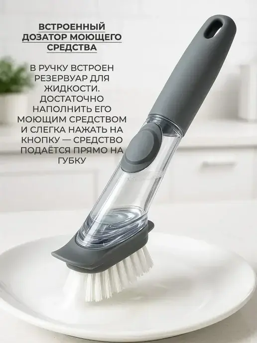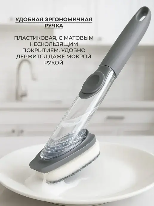 Удобная губка для кухни с ручкой и встроенным дозатором создана для комфортного и быстрого ухода за посуды и поверхностями дома. Это практичные товары, которые экономят время и решают многие бытовые мелочи. Встроенный резервуар позволяет добавлять любое средство для уборки, превращая процесс мытья в максимально удобный. Достаточно нажать на корпус, чтобы подать моющее или жидкость для очистки.Щётка-губка подходит для бережной чистки кастрюль, сковородок, противней, решетки, плиты, духовки, гриль, печки и раковины. Она эффективно удаляет следы жира, включая особо жирные участки. Благодаря продуманной форме насадка сочетает в себе участки более жесткая и более мягкая, что делает её по-настоящему универсальная. Плотный поролон и прочный материал корпуса гарантируют долговечность и позволяют мыть разные поверхности, в том числе кафель и стенки ванны, при этом не повреждая их — подходит даже для деликатной тарелка и стекла. Удобная щетка и небольшая щеточка на торце помогают добираться до труднодоступных мест.Изделие изготовлено из качественного пластика и поставляется как самостоятельная пластиковая штучки, которую можно использовать как домашние приспособления для разных задач. Такая хозяйственные принадлежности являются отличными помощники для регулярной очистки кухни и ванной комнаты. Сама конструкция остаётся прочные, удобная форма облегчает работу, а набор сменных щетки помогает продлить срок эксплуатации. Благодаря конструкции диспенсера удобно добавлять чистящее или другое средство.Несмотря на происхождение из китая, эта модель ничем не уступает лучшим китайские новинки современной бытовой категории. Она создана как действительно полезные и многоразовая принадлежность, подходящая для чистки кафеля, стенок унитаза или других поверхностей — словом, незаменимая в хозяйстве. Выполнена в аккуратном белая стиле; доступны также варианты более белые или большие, если это понадобится.