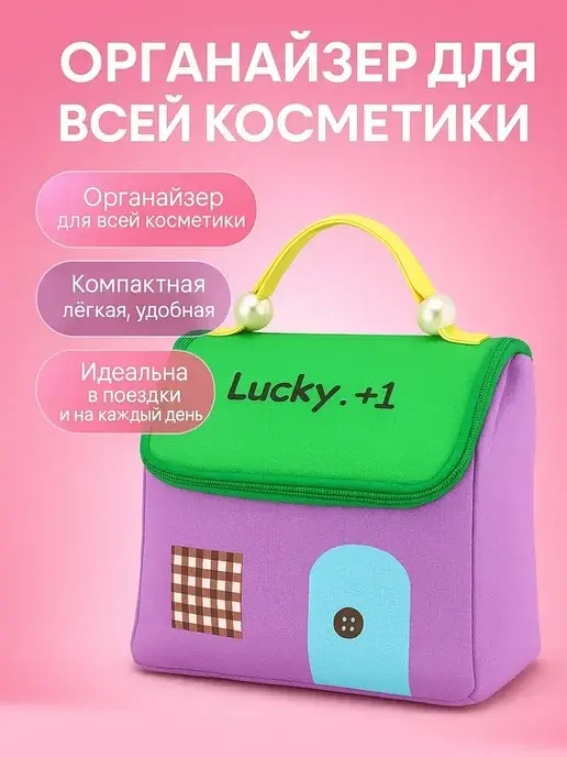 Давно хотела себе яркую и удобную косметичку, чтобы всё было под рукой и красиво. Увидела на Wildberries лимитированную сумку Lucky+1 в форме домика с милым медвежонком и сразу влюбилась. Заказала и ни капельки не пожалела!