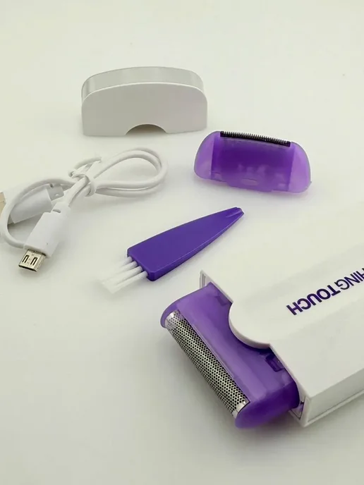 Прибор лёгкий, удобно лежит в руке, есть подсветка — очень помогает в труднодоступных местах. Работает от аккумулятора, заряжается быстро. В комплекте две насадки: одна для более грубых волос, вторая для нежных зон.