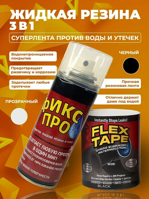 Тестирую набор Fix Pro с жидкой резиной в спрее и лентой Flex Tape. Обещают мгновенную остановку течи на трубах, бассейнах и крышах